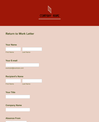 Human resources departments can use our free Return to Work. 1st Day of Absence. Form submissions are automatically synced to your Jotform account so youll instantly receive the physician releases as soon as theyre signed and submittedWith Jotform Form Builder you.